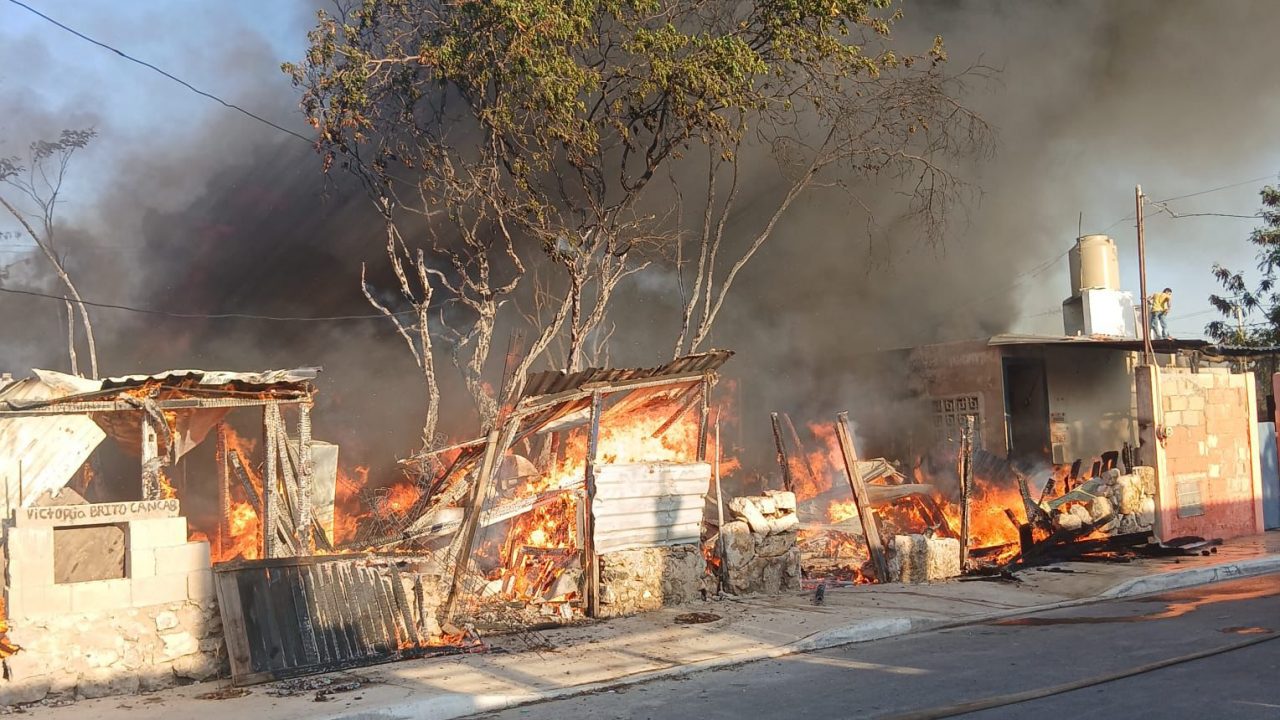 Mérida, Yucatán., 8 de abril de 2026. Agentes, bomberos y paramédicos atendieron la emergencia; tres personas fueron valoradas, de las...