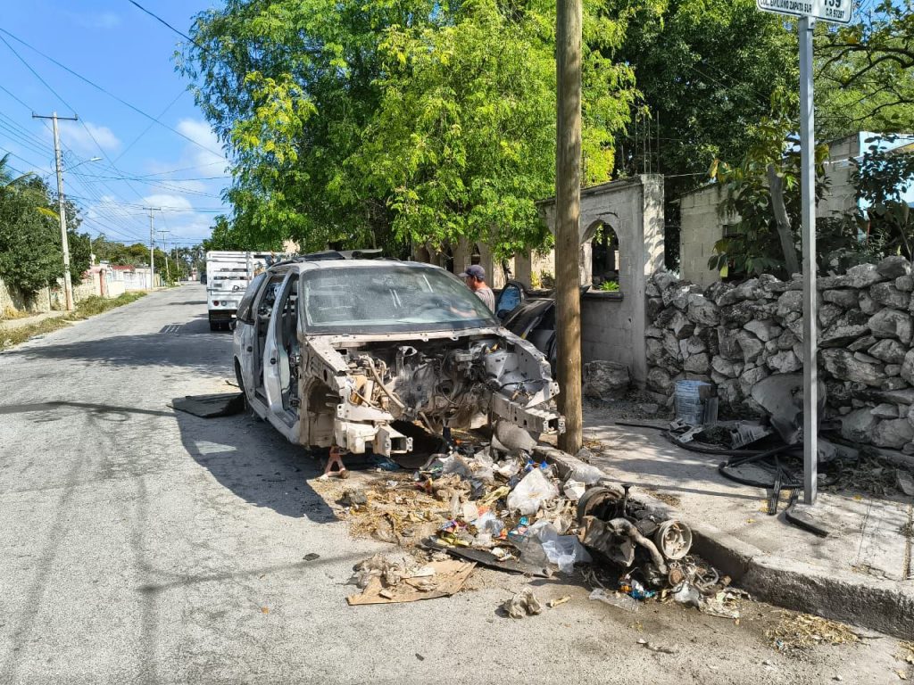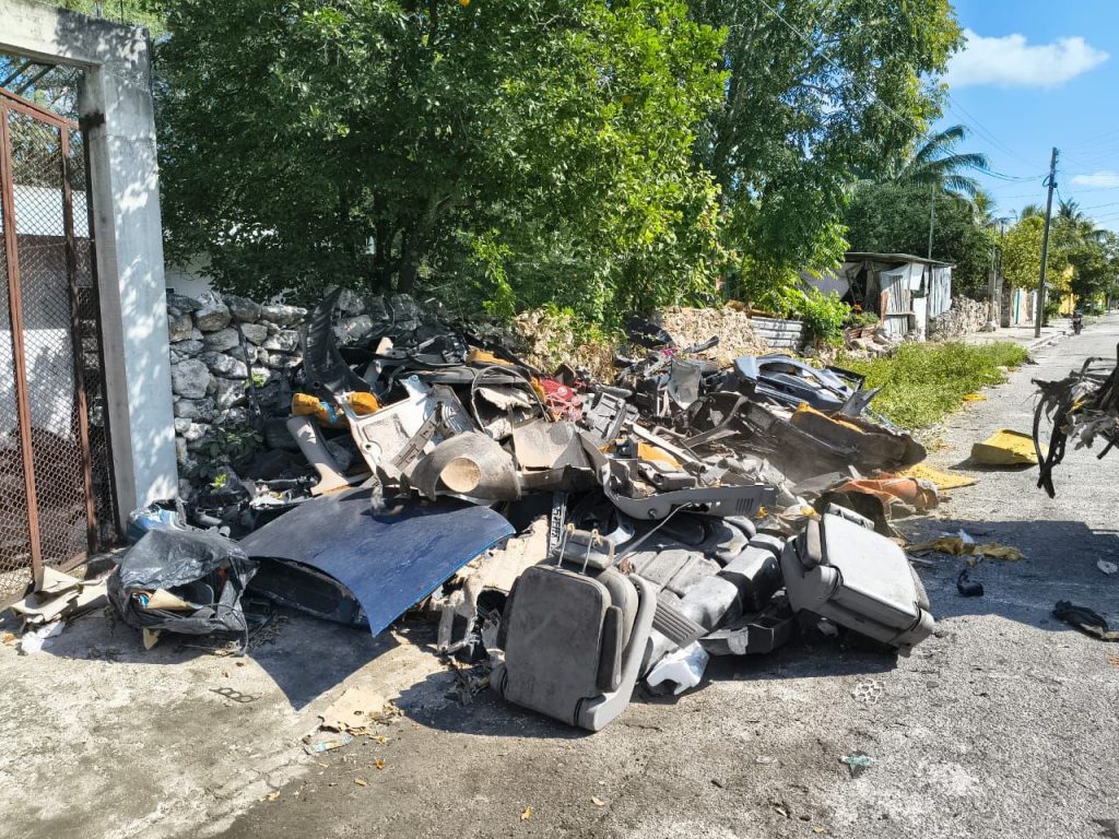 Mérida, Yucatán, 03 de diciembre.— Un predio convertido en deshuesadero clandestino fue intervenido este martes por autoridades municipales, luego de que su propietario se apropiara de la vía pública colocando piezas de vehículos y desmantelados sobre la banqueta y parte de la carretera, poniendo en riesgo a vecinos y automovilistas en la colonia Emiliano Zapata Sur.