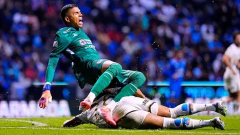 México.- El arquero colombiano Kevin Mier sufrió una fractura tras la fuerte entrada del jugador de Pumas, Adalberto Carrasquilla, durante...