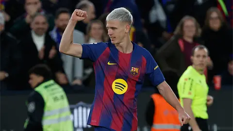 Un doblete de Fermín en la primera mitad, y los goles de Olmo y Lewandowski en la segunda descongelaron a...