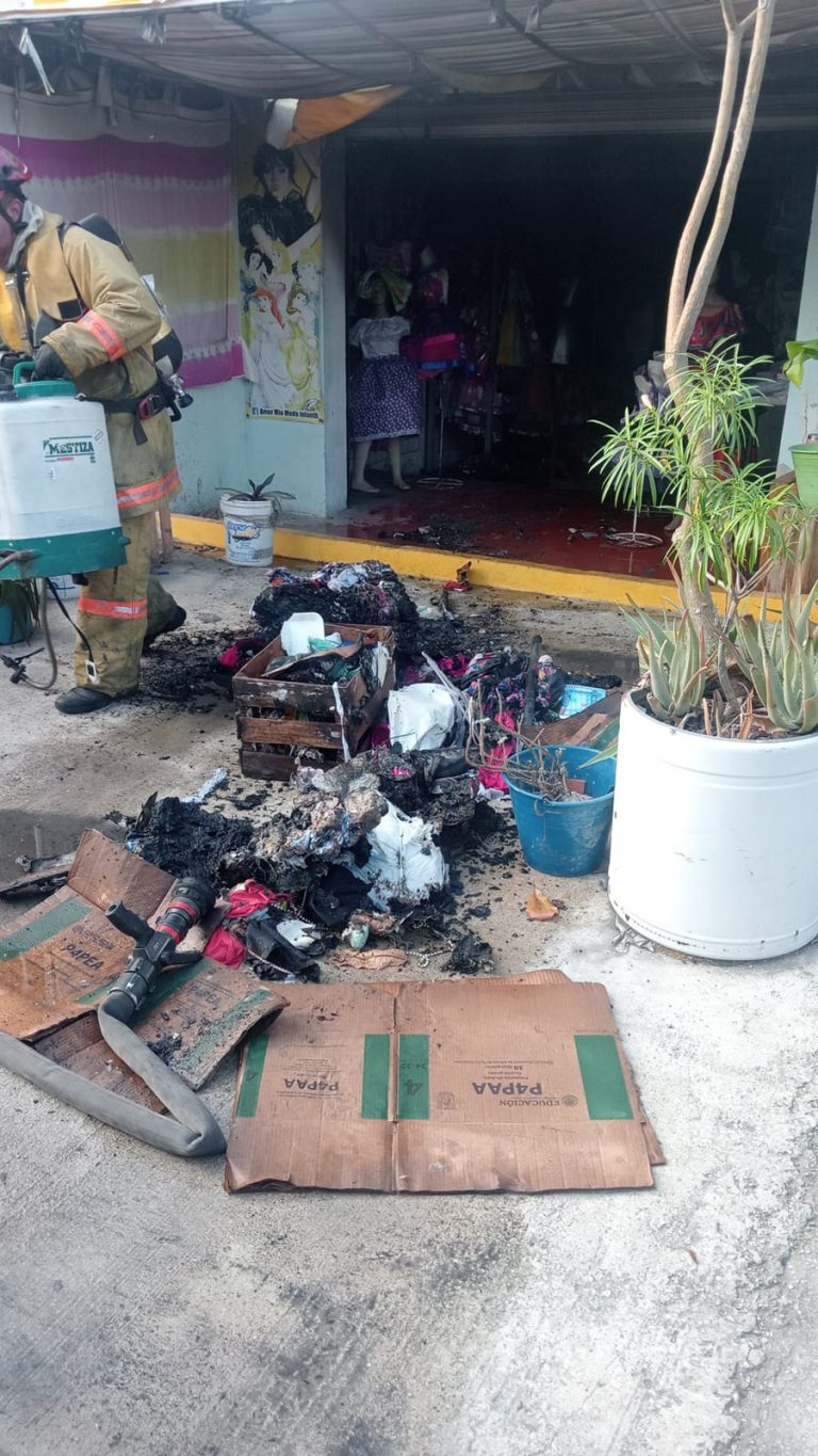 Mérida Yucatán 5 noviembre 2025.- Incendio de local de ropa ocasiona evacuación preventiva en escuela primaria de Mérida La Secretaría...