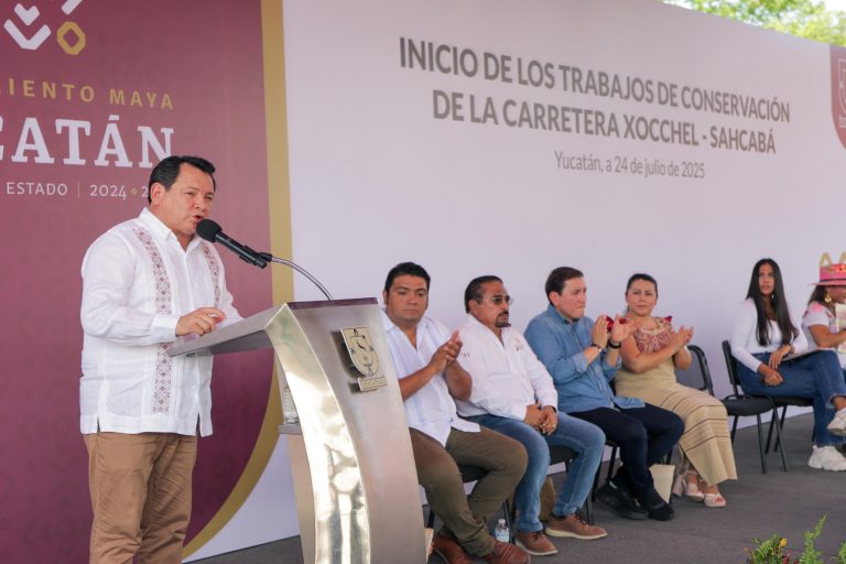 Xocchel, Yucatán, a 24 de julio de 2025.- El Gobernador Joaquín Díaz Mena dio inicio a la reconstrucción de la...