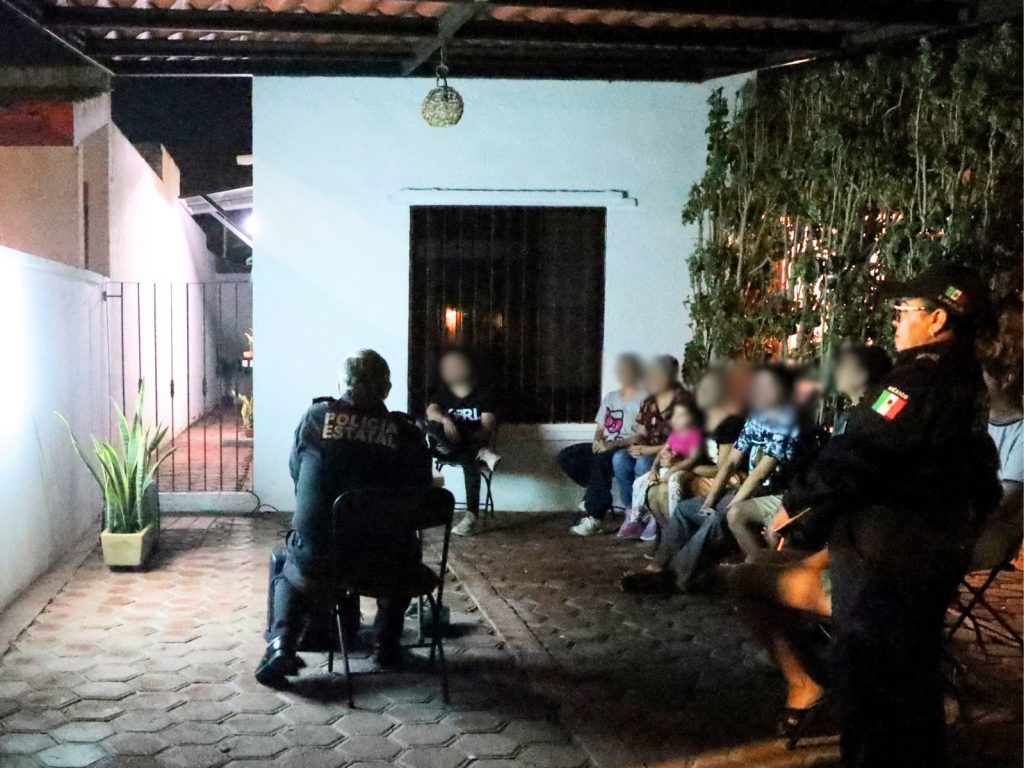 Además de las visitas, se han realizado reuniones vecinales en domicilios donde se dan pláticas de prevención, a fin de que las personas sepan de qué manera reaccionar ante cualquier hecho sospechoso que ponga en peligro la integridad de las y los vecinos.