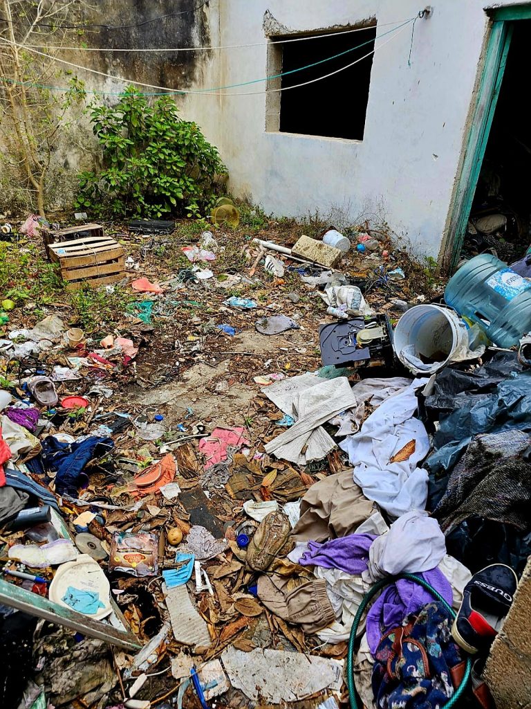 De acuerdo con el reporte oficial, en el predio se almacenaban grandes cantidades de basura, lo que generó condiciones insalubres. Durante las labores, personal municipal reportó la presencia masiva de cucarachas que salían de paredes y pisos, evidenciando el nivel de contaminación en el sitio.