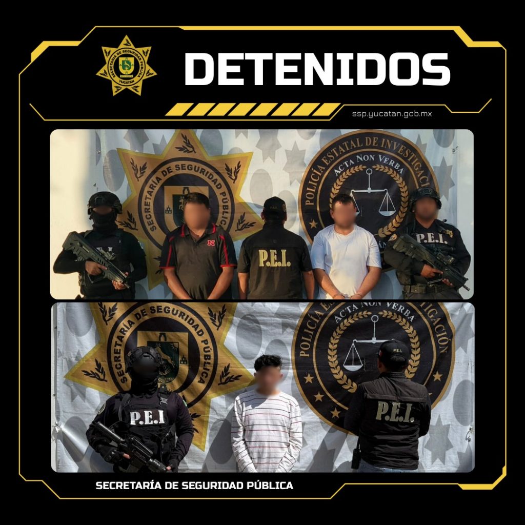 Se trata de José Ángel “N”, alias “Chilango”, de 38 años de edad, originario del Estado de México; Freddy del Jesús “N”, de 41 años, originario de Mérida; y José Iván “N”, alias “Porongas”, de 35 años, también originario de Mérida.