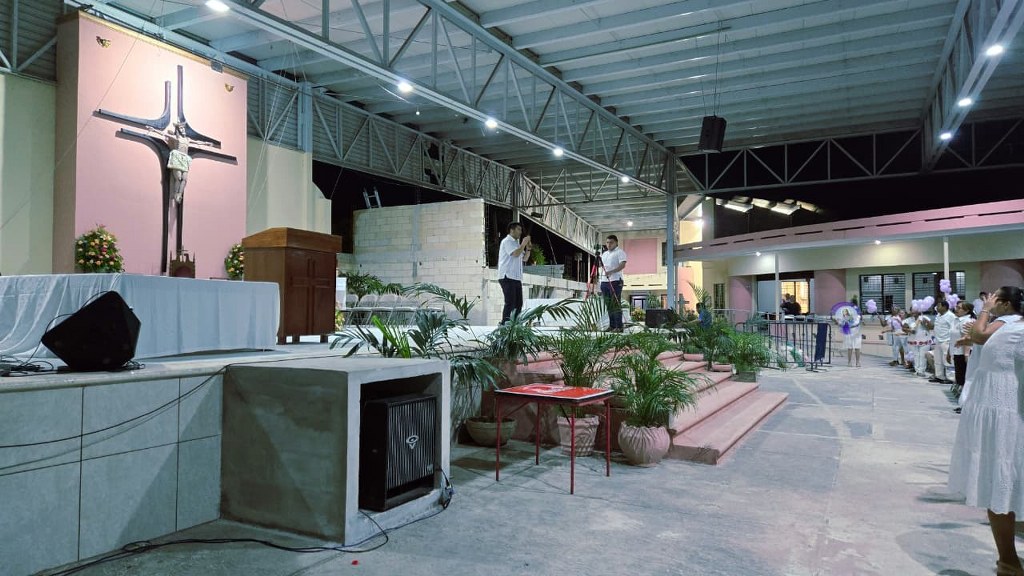 A las 8:00 p.m. dio inicio la Santa Misa, presidida por el P. Luis Góngora Góngora, quien en su homilía exhortó a los presentes a vivir una fe activa, comprometida y renovadora. Aunque sus palabras fueron espontáneas y en algunos momentos difíciles de seguir por su estilo libre, el mensaje central fue claro: la Iglesia debe ser una comunidad viva, cercana, en salida, y en constante escucha de la realidad que la rodea.