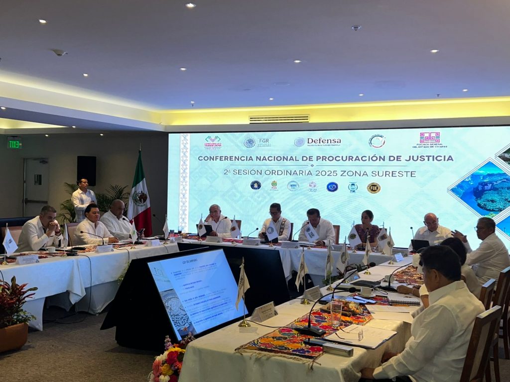 Las reformas legales recientes en materia de seguridad y los avances en los sistemas nacionales de información fueron abordados en la Segunda Sesión Ordinaria 2025 de la Conferencia Nacional de Procuración de Justicia de la Zona Sureste, realizada este día en la ciudad de Tuxtla Gutiérrez, Chiapas y a la que asistió el Fiscal General del Estado, Juan Manuel León León.