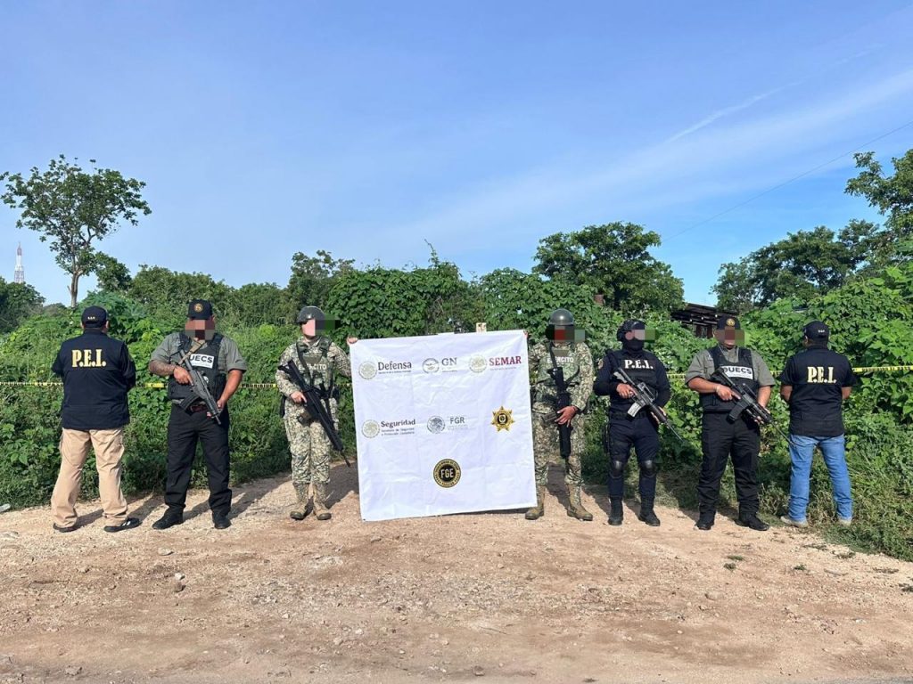 Efectivos del Ejército, Marina y Guardia Nacional junto con elementos de la Secretaría de Seguridad Pública y la Fiscalía General del Estado ( FGE), en colaboración con con autoridades quintanarroenses, ejecutaron una orden de cateo en un predio de la localidad de Xelpac.