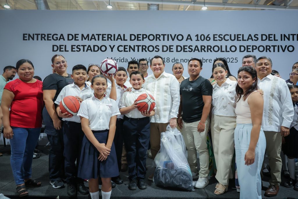 El Gobernador Joaquín Díaz Mena encabezó la entrega de material deportivo a 106 escuelas de municipios yucatecos, así como a Centros de Desarrollo Deportivo, para que niñas, niños y jóvenes practiquen deporte con herramientas dignas, seguras y de calidad.