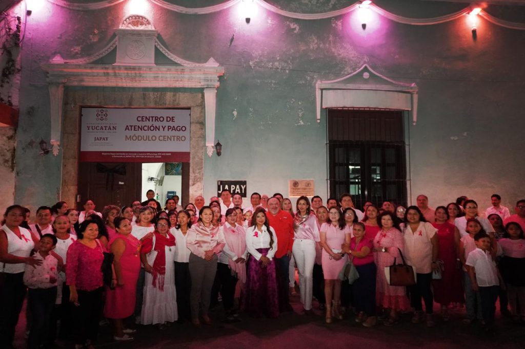La Junta de Agua Potable y Alcantarillado de Yucatán (Japay) iluminó su edificio central en color rosa para enviar un mensaje de conciencia y acompañamiento a todas las mujeres que enfrentan el cáncer de mama.