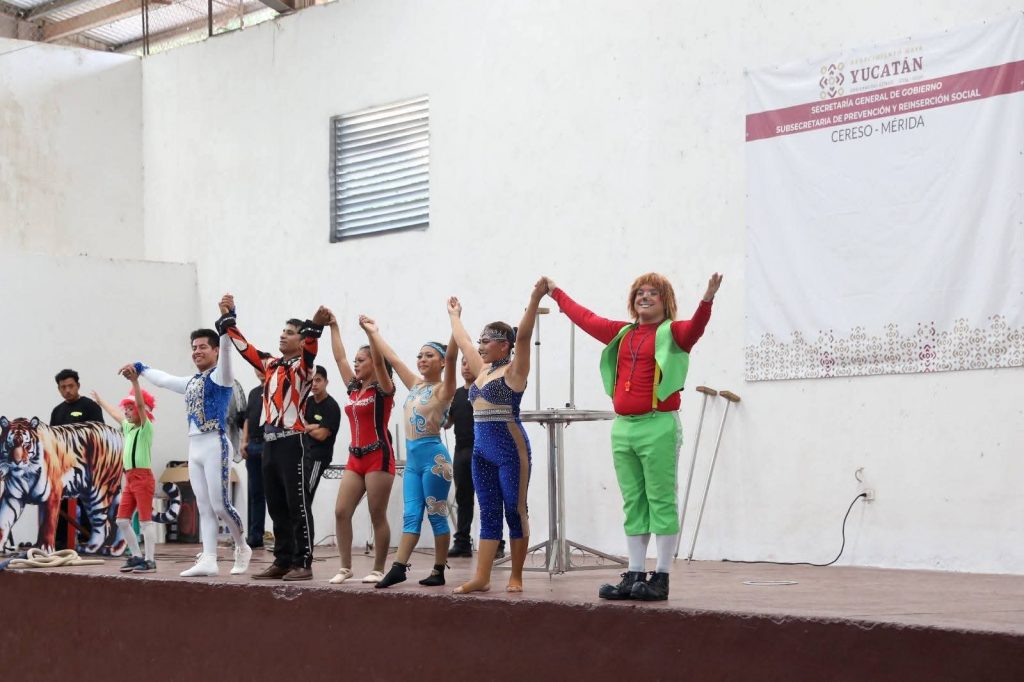 La magia del circo llegó a las personas privadas de la libertad en el Centro de Reinserción Social (Cereso) de Mérida, como parte de las actividades orientadas a fortalecer su acceso a la cultura y la convivencia familiar.