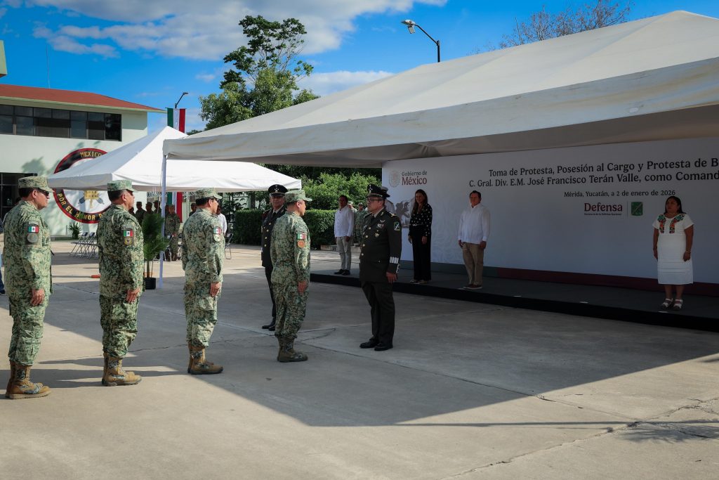 Durante el acto se destacó la trayectoria de Terán Valle, que incluye cargos diplomáticos, condecoraciones y responsabilidades en diversas brigadas y zonas militares, además de su labor como director del Servicio Militar Nacional y como agregado militar y aéreo en la embajada de México en Canadá.