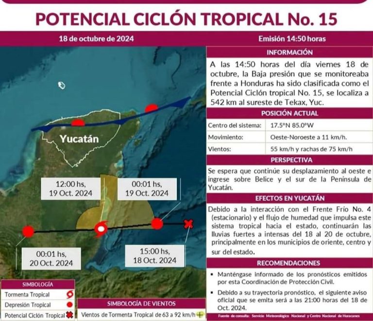 PROCIVY informó: "A las 14:50 horas del día viernes 18 de octubre, la Baja Presión que se monitoreaba frente a...