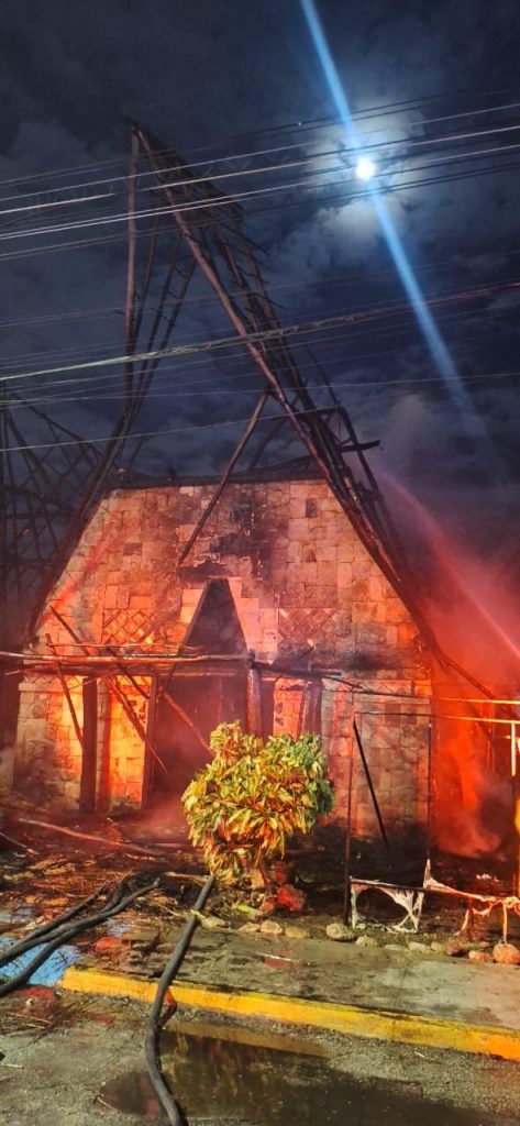 De manera inmediata, agentes de seguridad y bomberos de la SSP acudieron al sitio para la verificación y atención del incidente. En el lugar se confirmó que el establecimiento, integrado por tres palapas con techo de huano, presentó afectación total, sin que se reportaran personas lesionadas.