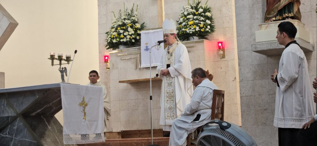 Agradeció también la labor del párroco saliente, el padre Pedro Novelo López, reconociendo su entrega tanto en la parroquia como en la cancillería. Anunció que el padre Novelo será presentado próximamente como nuevo párroco de San Buenaventura, en Homún.